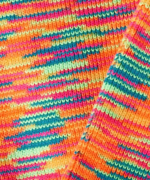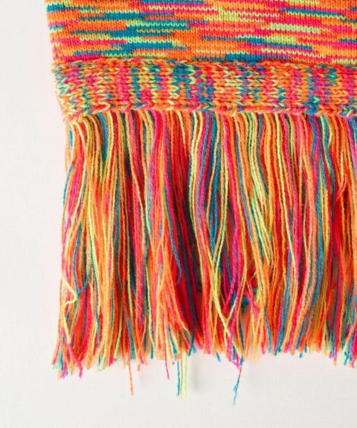 どこか懐かしさを覚える鮮やかなマルチカラーが存在感を放つデザインは、コーディネートのポイント使いにおすすめ。