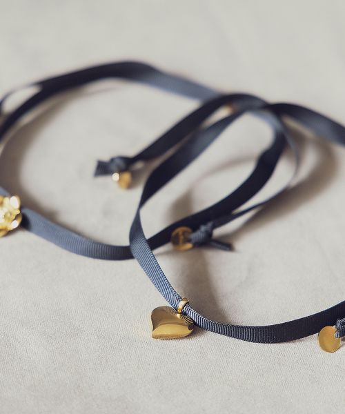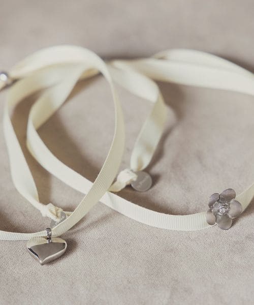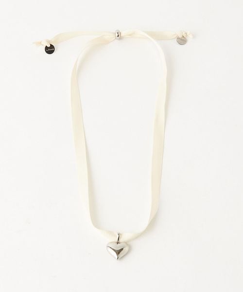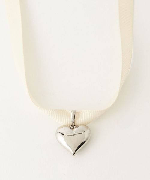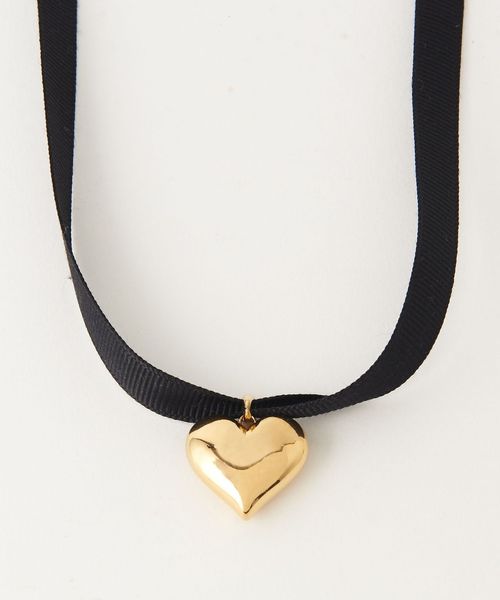 グログランリボンに、ボリュームのあるハートチャームを配したネックレス。