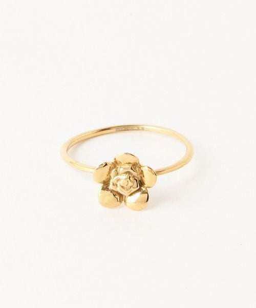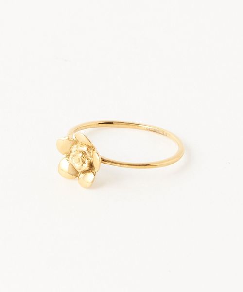 華奢なリングの中央に添えられたフラワーモチーフが存在感を放つデザイン。