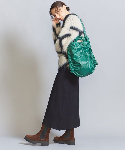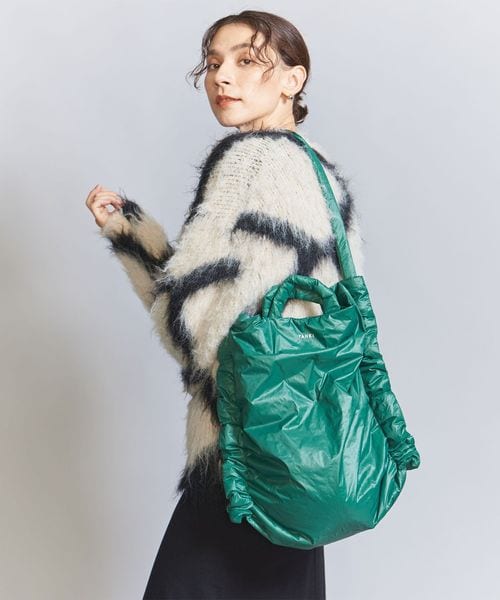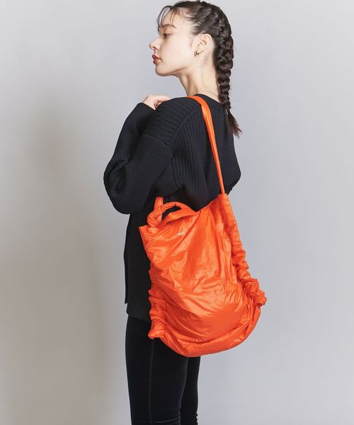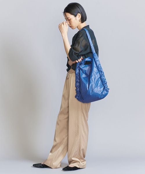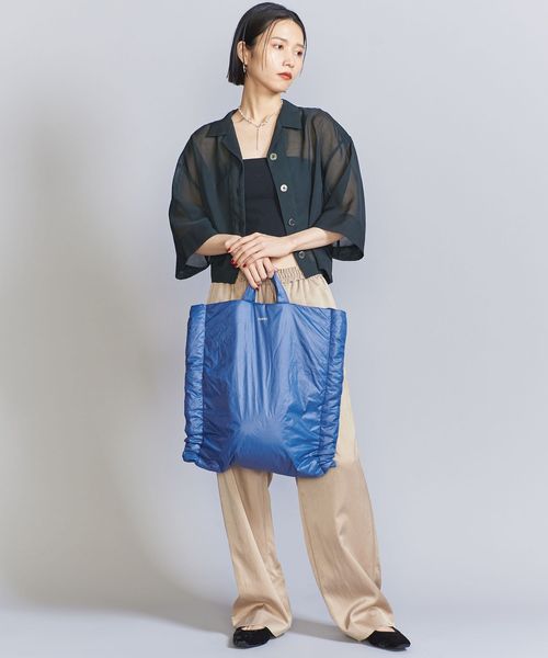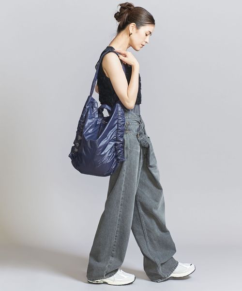 ツヤのあるナイロンをくしゅくしゅとさせて持つことで、スポーティーかつ都会的な印象に導きます。