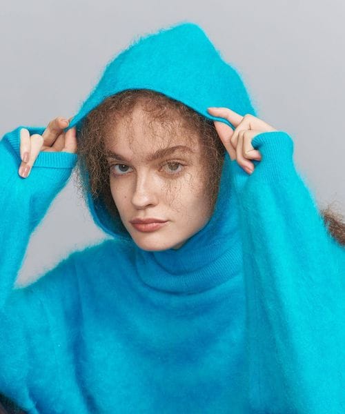 毛足のある質の良い素材を使用しており、肉厚すぎず首元で落ち着くシルエットです。