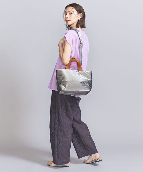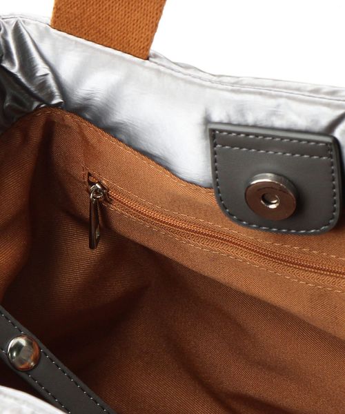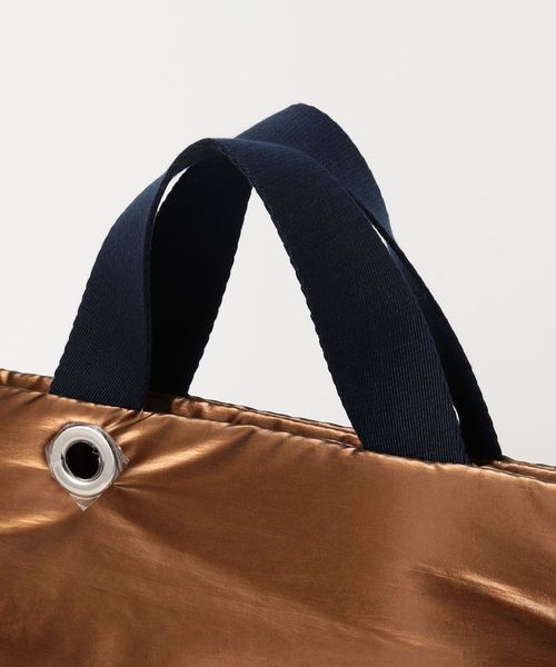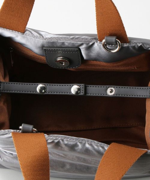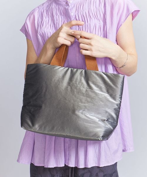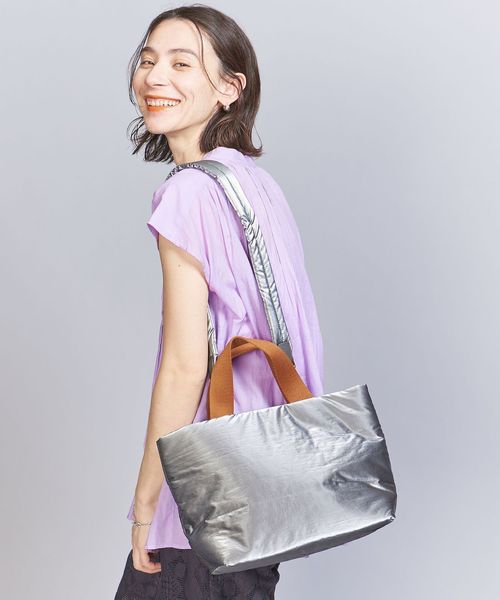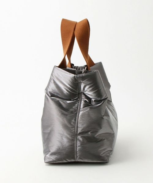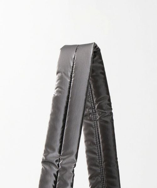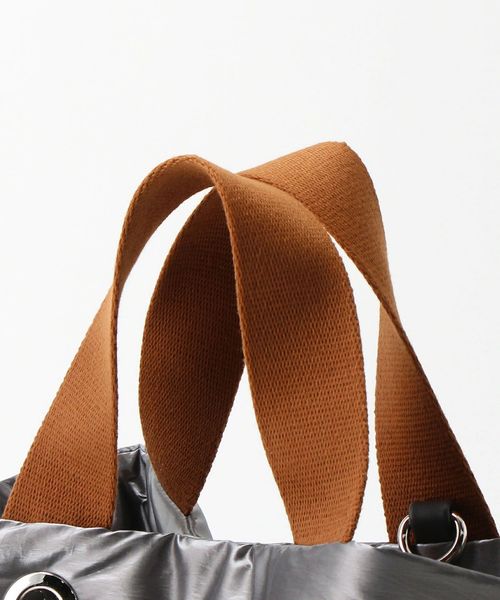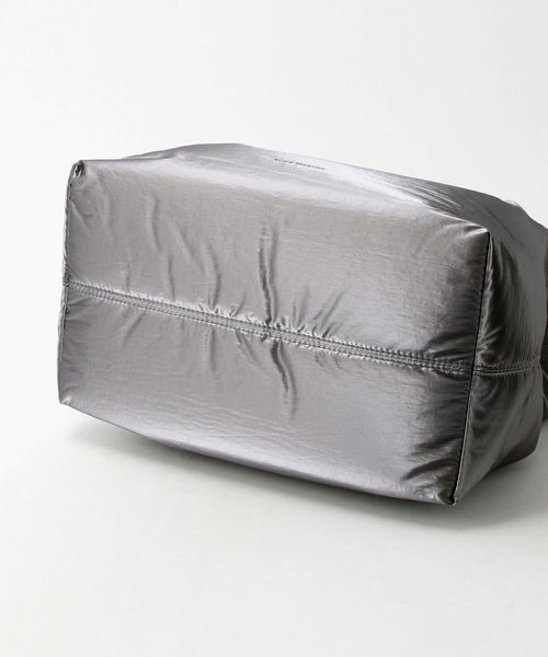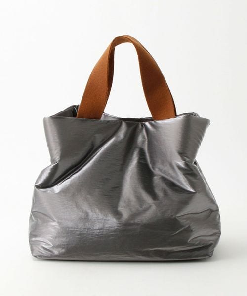 シャイニー素材の無機質感がシンプルモダンな雰囲気を醸し出すバッグ。