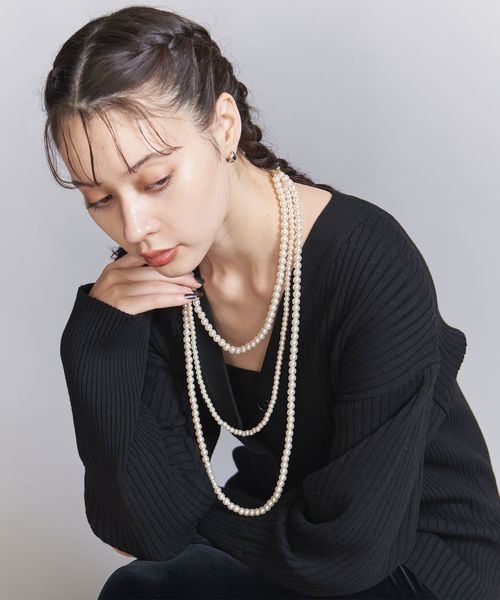 ボリュームのあるパールモチーフがコーデの主役として輝く、4WAYロングネックレス。