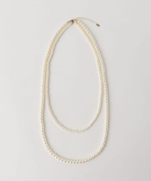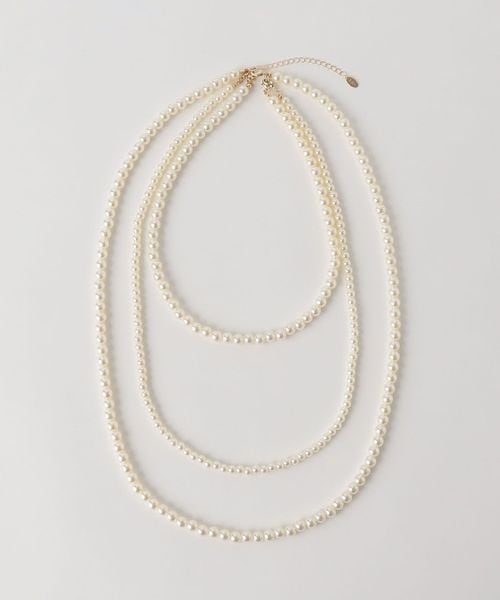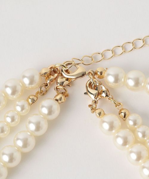 大きさの異なるパールモチーフを組み合わせた3連ネックレス。