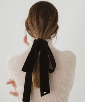 甘くなりすぎないベルベット生地に、ボリュームを抑えたシンプルなデザインの大人上品なリボンシュシュ。
