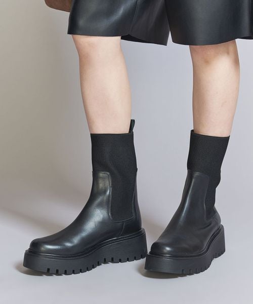 足首をホールドするゴムの部分が長く、ソックスを合わせているような見え方で昨年人気を博したサイドゴアブーツがリバイバル。