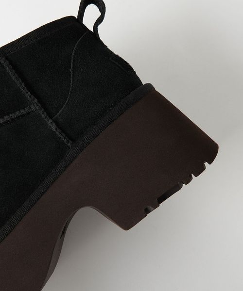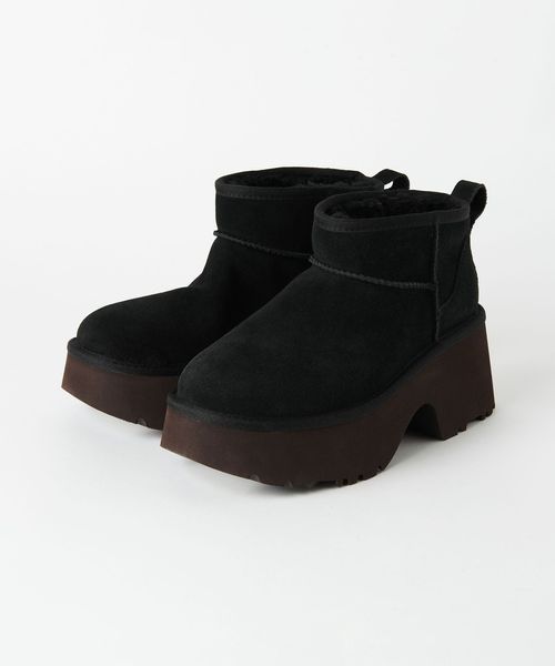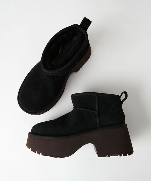 チャーンキーヒールが新鮮な、<UGG>「Classic Ultra Mini New Heights」ブラックカラー