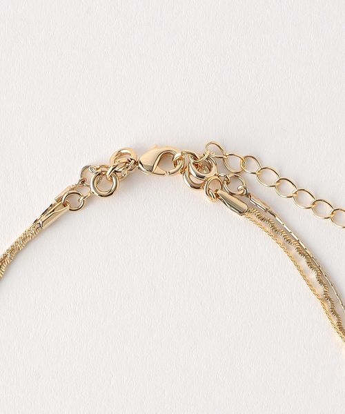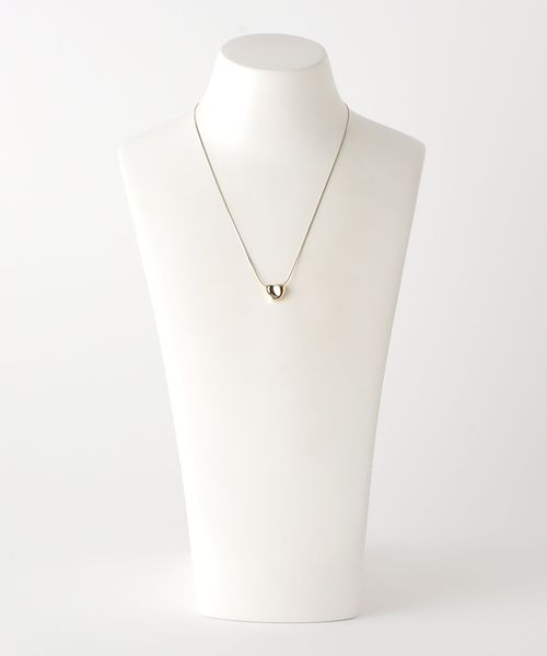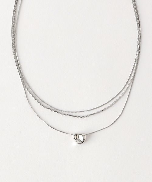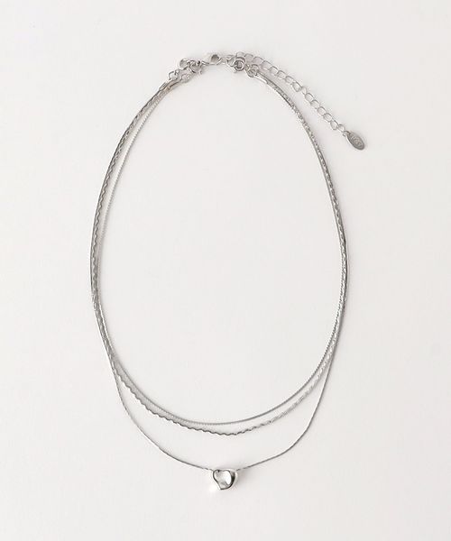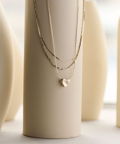 異なる3種類のチェーンを組み合わせて、チャーム部分は少し歪みのあるハート型が印象的。