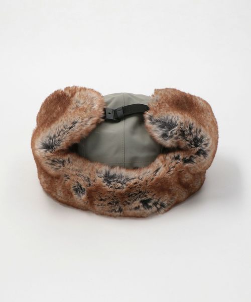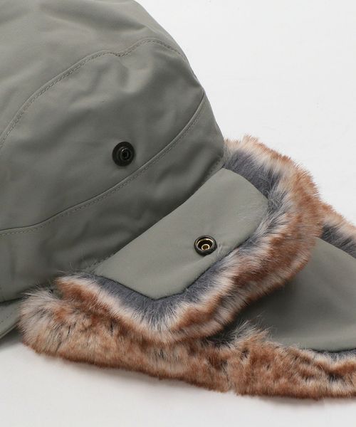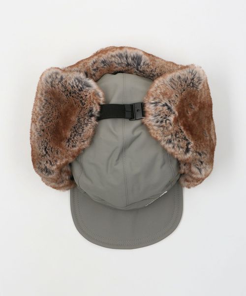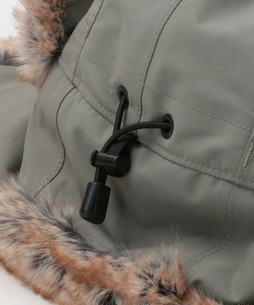 フェイクファー部分をテープバックルで頭部に巻き上げることで、気温やコーディネートに合わせて変化を楽しめます。