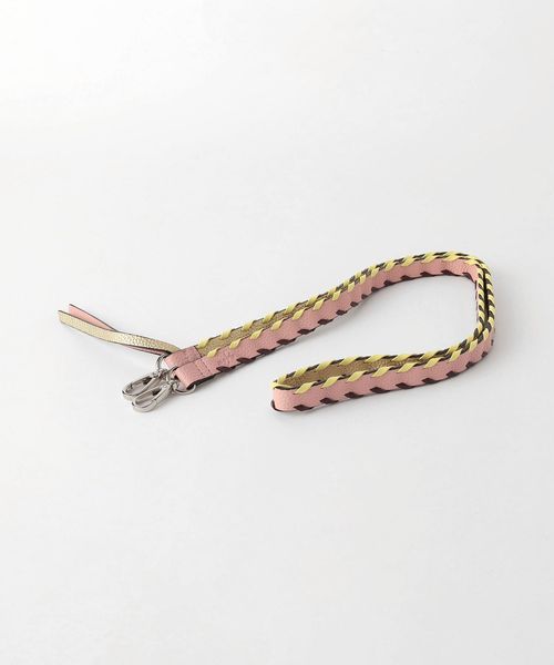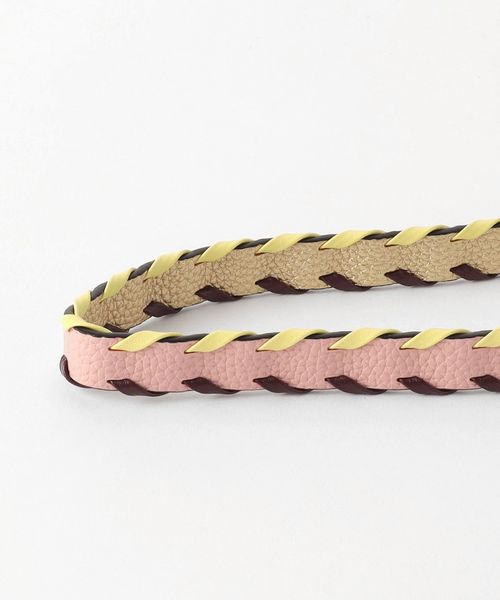 ストラップのベースは裏表がバイカラーで、サイドにも2色で編み込みを施しています。