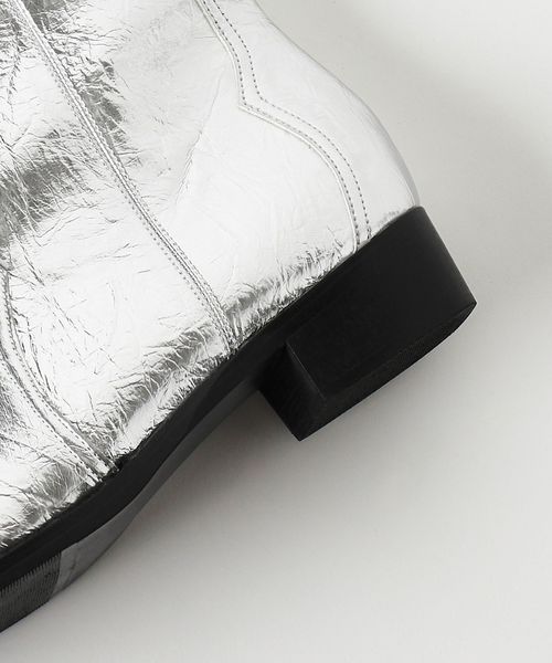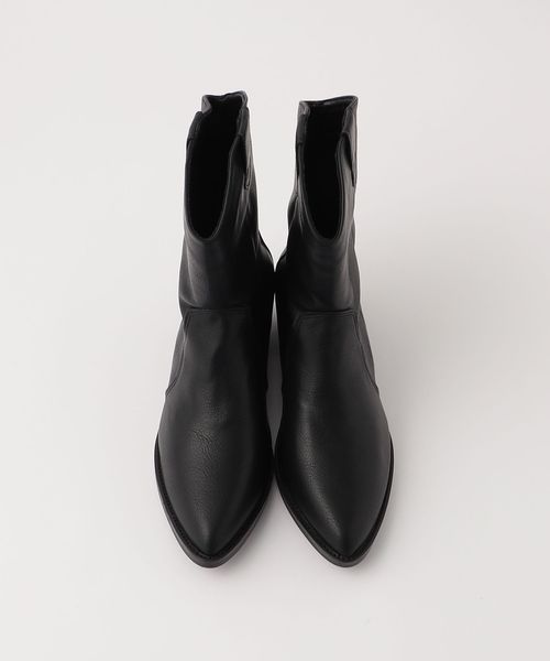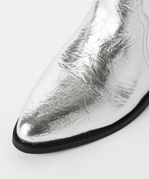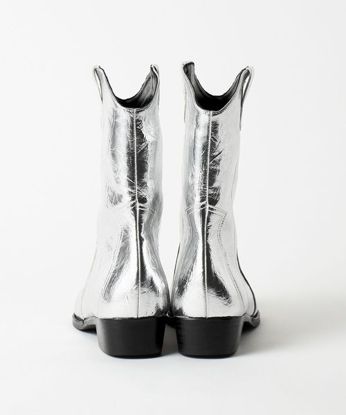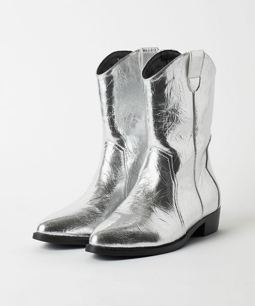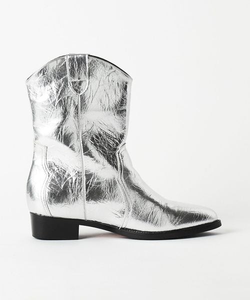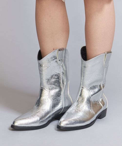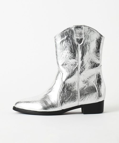 幅広いボトムと好相性のショート丈ウエスタンブーツ。