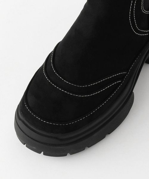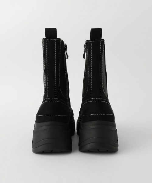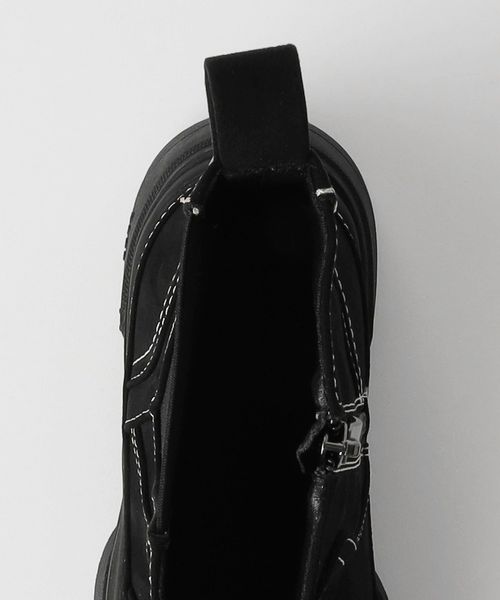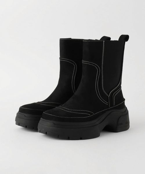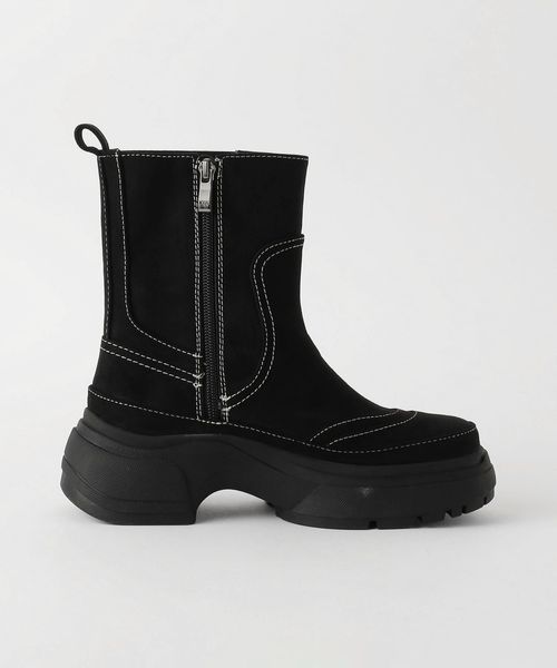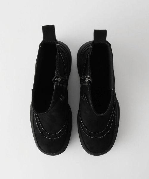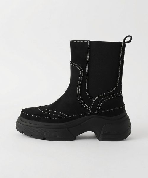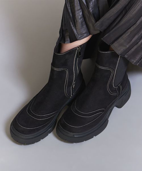 ボリューム感のあるソールに存在感を放つステッチが印象的なショートブーツ。