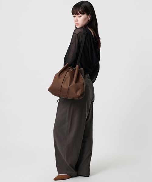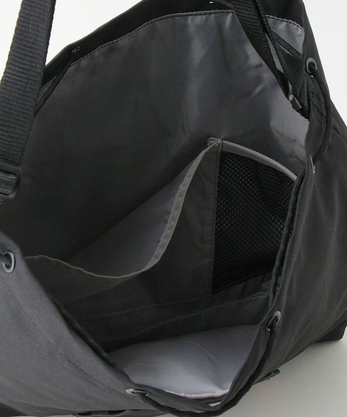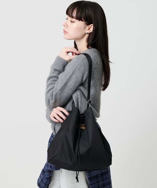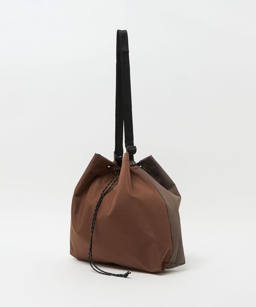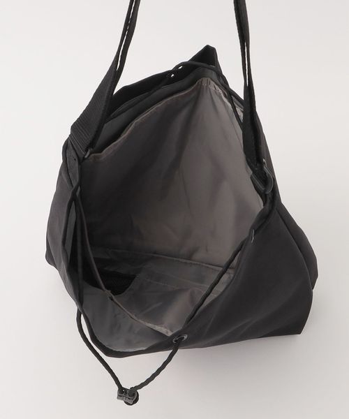 シューレースを絞ることで巾着型にもなるバッグ。