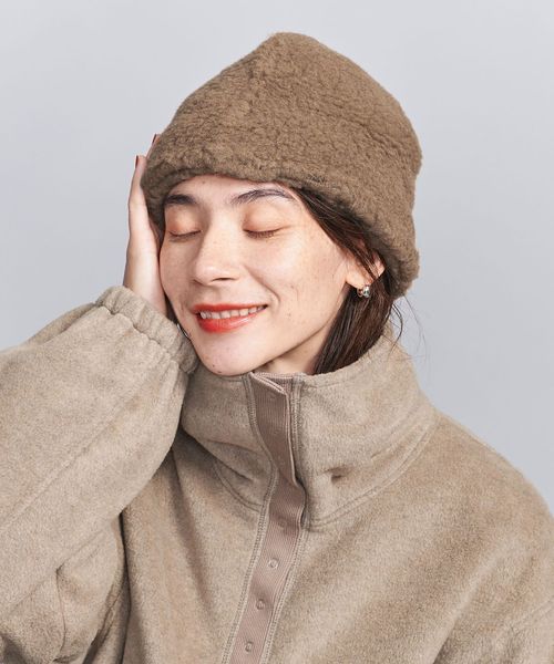 もこもこの素材感と、深めにかぶれる見た目にも暖かさのあるエッグシェイプのハット。