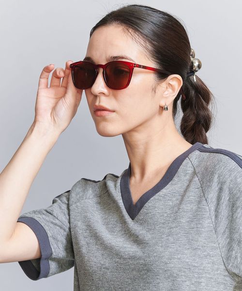 適度な丸みのスクエアベースのフレームで、少し大きめなシルエットは顔周りをシャープに小さくみせてくれるのも魅力。