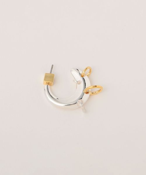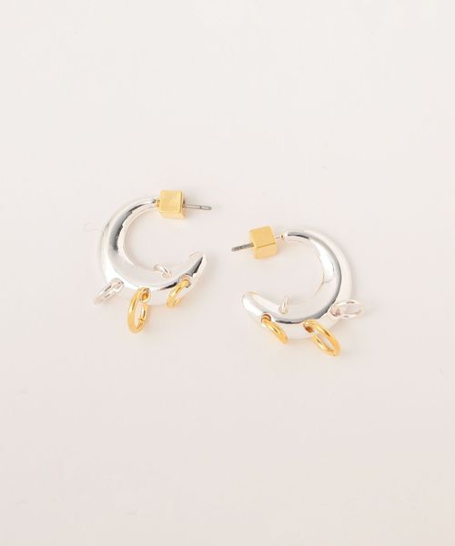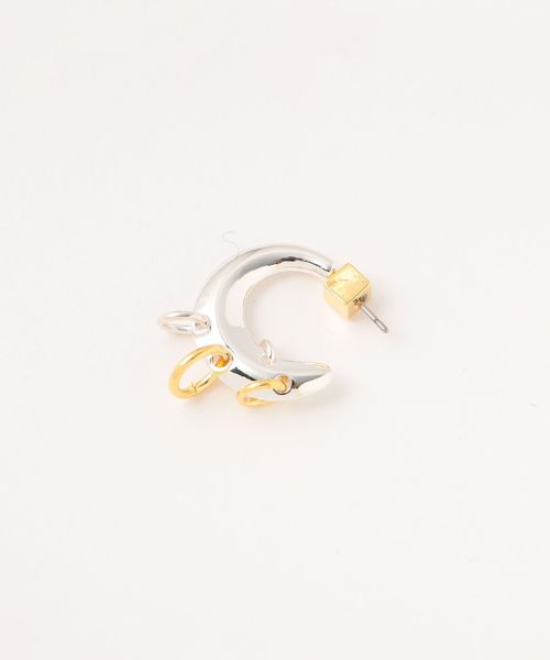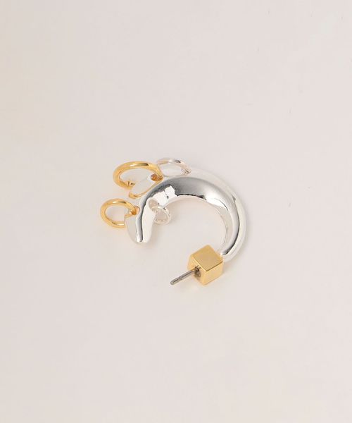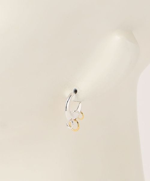 小ぶりで丸みのあるフープ型に大小のリングを散らしたデザインのピアス。