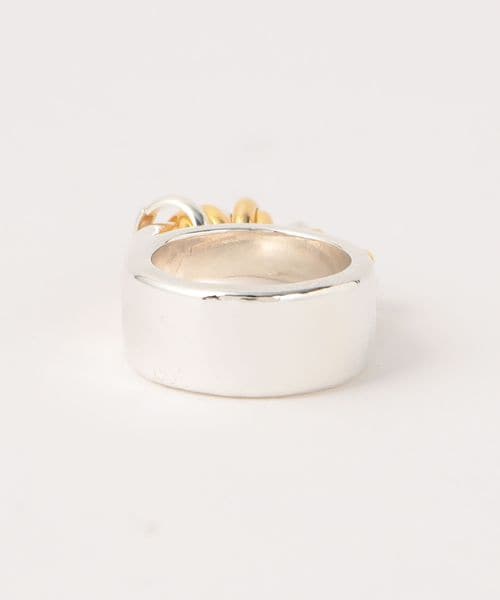 ボリュームのあるパーツをやや幅のある本体に対し、斜めに配した印象的なリング。
