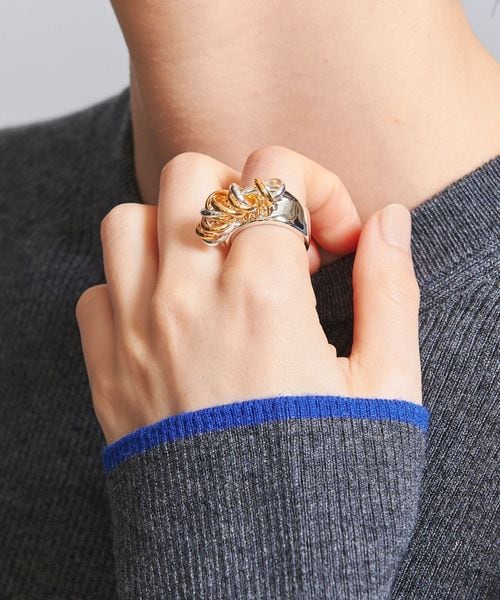 大胆なデザインと揺れ感のあるパーツの組み合わせは指先で存在感を放ちます。