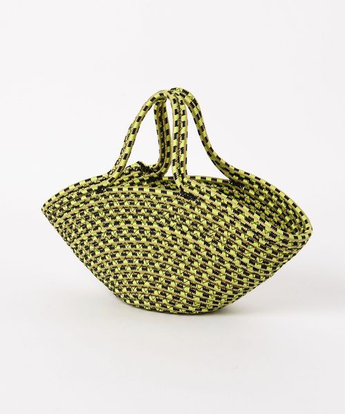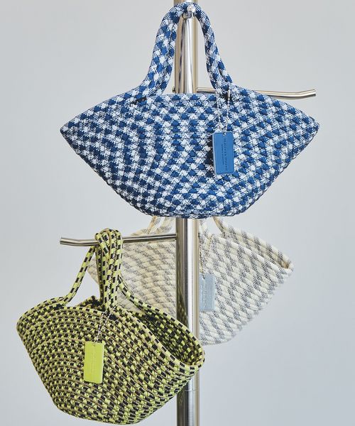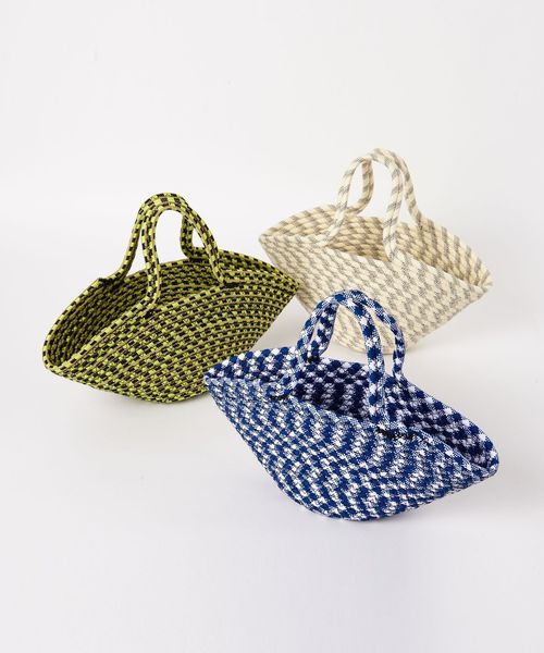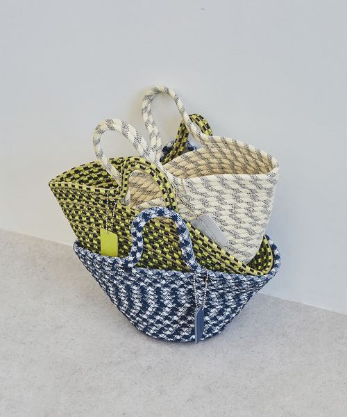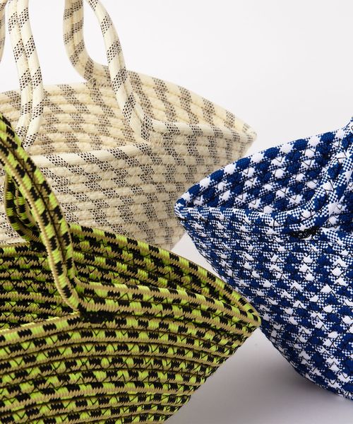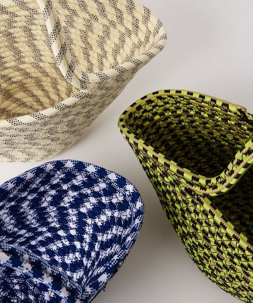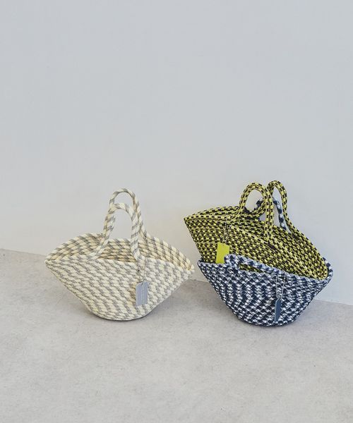 パラコードの模様とコロンとした愛らしいフォルムが、春夏スタイルに映えるバスケットバッグ。