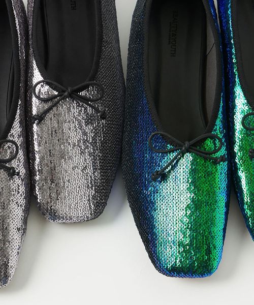 トレンド感溢れる、キラキラのスパンコールが目を惹くバレエシューズ。