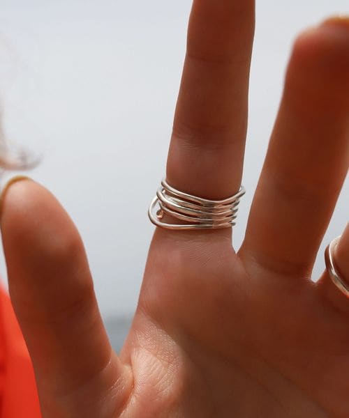 細身のリングや高さのあるリングなど、様々なデザインと組み合わせてコーディネートをお楽しみいただけます。