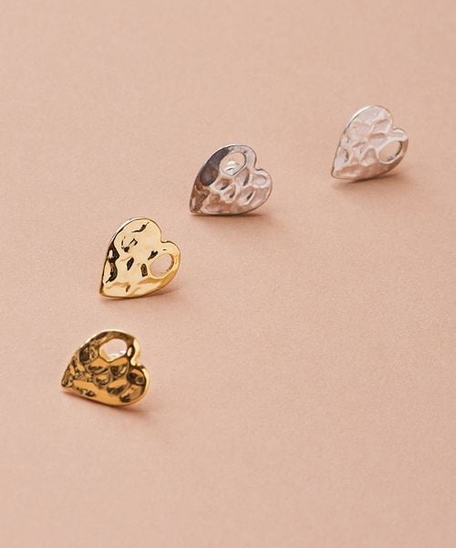 あえて凹凸をつけた個性的なハートモチーフが特徴のシンプルなピアス。