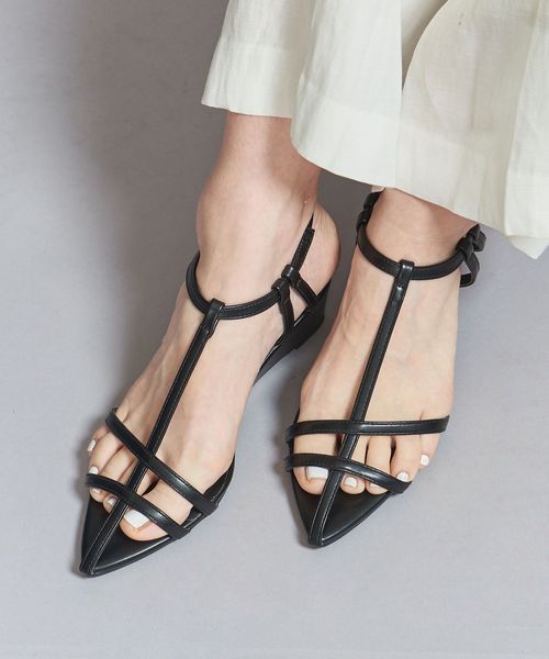 華奢なウェッジ仕様のヒールが安定感のあるサンダル。