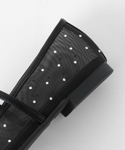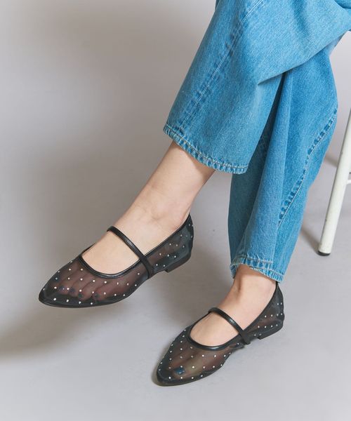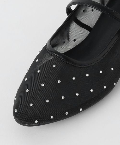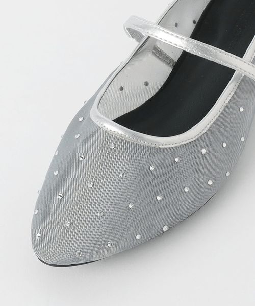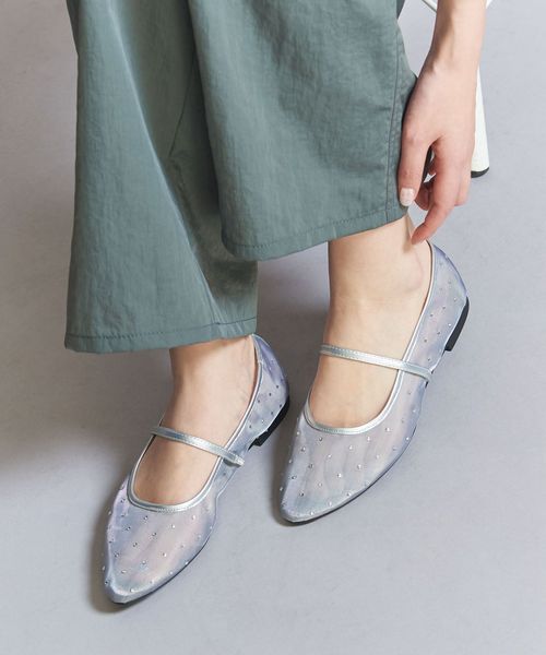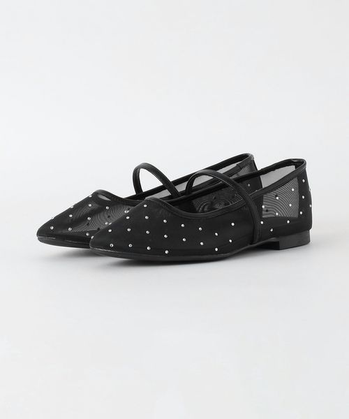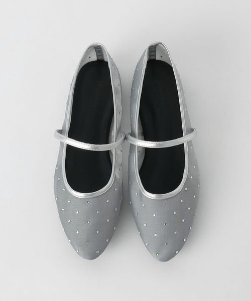 チュール素材に施されたビジューがシーズンムード漂うバレエシューズ