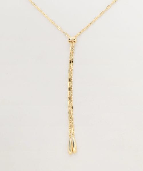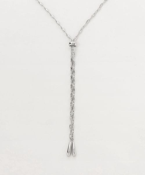 デザインチェーンがポイントになった、シンプルルックなループタイネックレス。