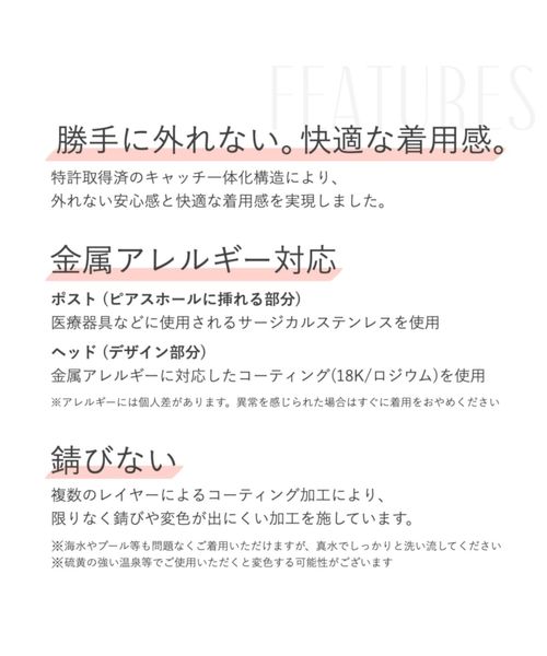"ずっと着けていられるアクセサリー"とも言われる、サージカルステンレスを使用。
