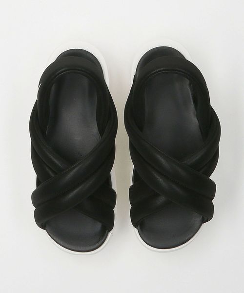 アッパーデザインのビッグクロスと、バックストラップが安定感のある履き心地に導きます。
