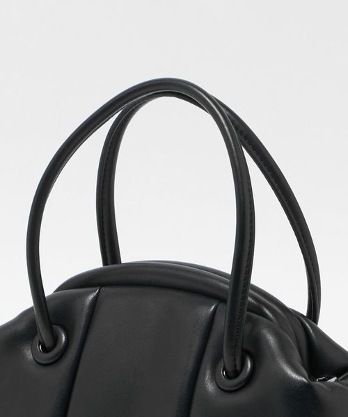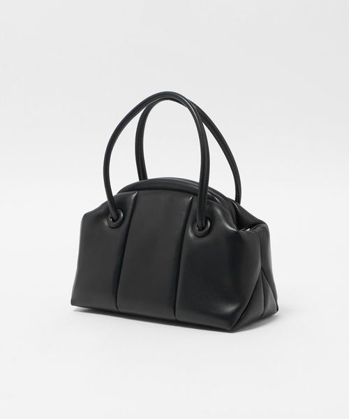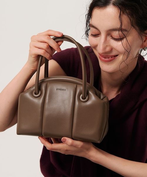 肉厚でマットな質感の合成皮革を使用し、クラシカルな印象を与えるミニボストンバッグ。