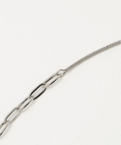 2種類のチェーンを組み合わせた動きのあるデザインは、シンプルながらも首元で存在感を発揮。