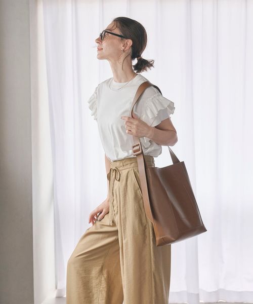 たすき掛けでラフにお持ちいただいたり、肩掛けできちんと見えも叶います。