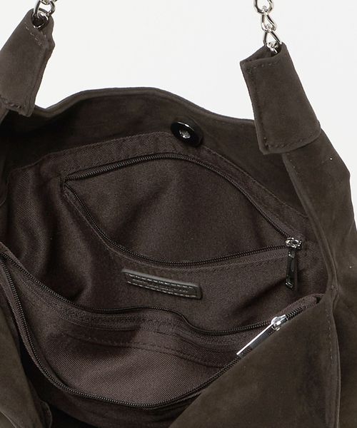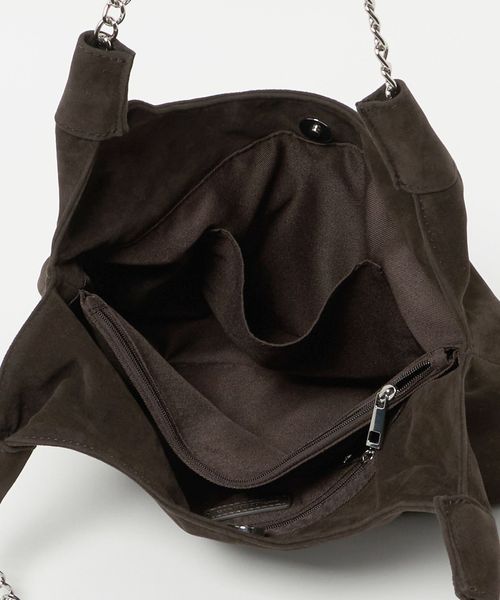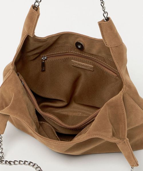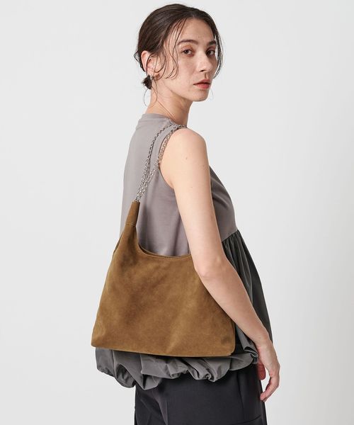 スエードライクの素材でシーズンムードを漂わせるショルダーバッグ。