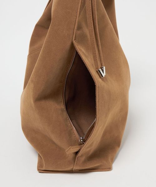 スエードライクな素材感がアクセントを効かせる<LE VERNIS>トライアングル型ショルダーバッグ。
