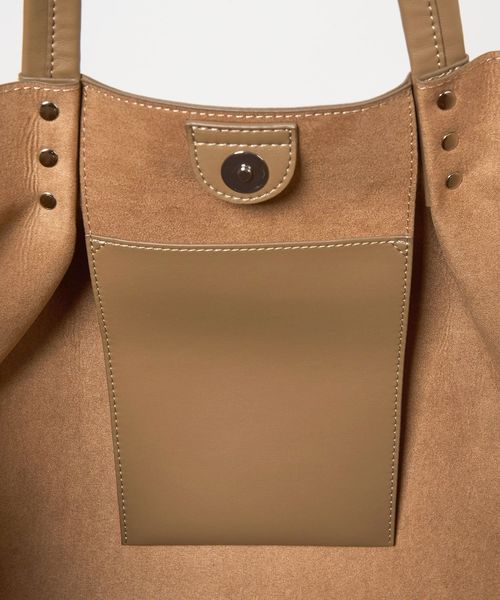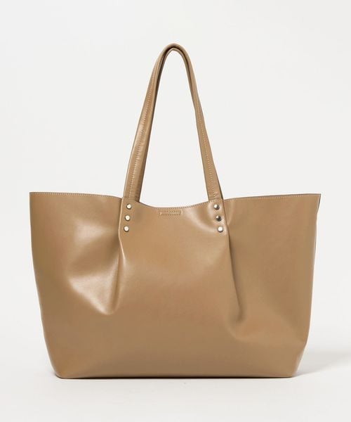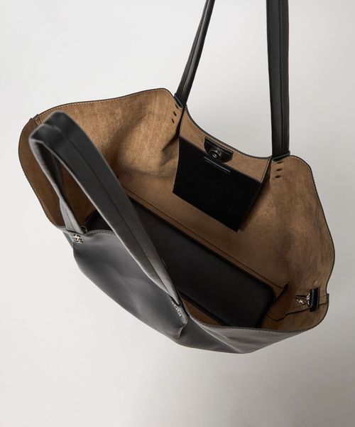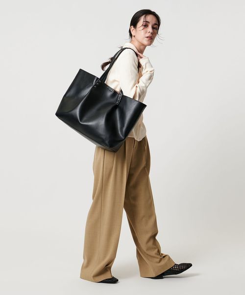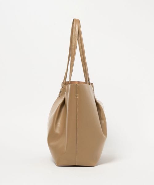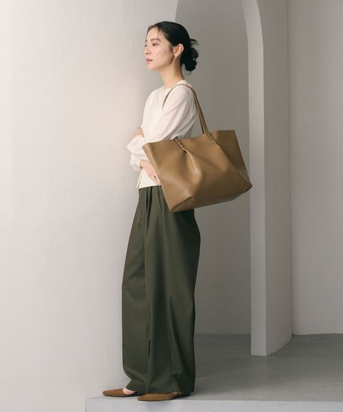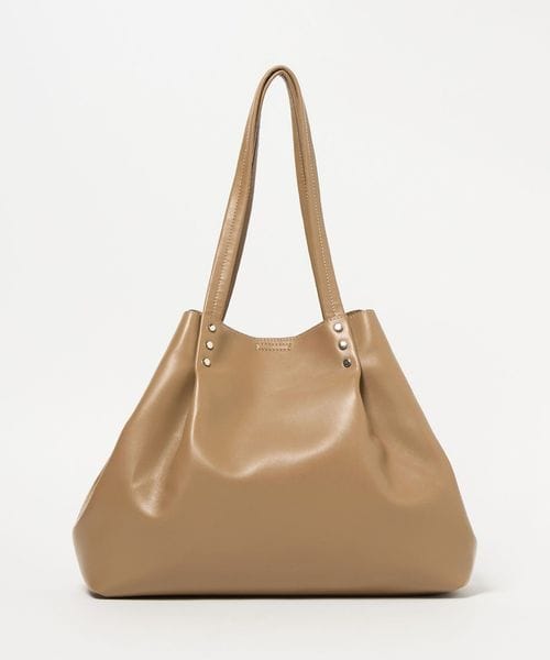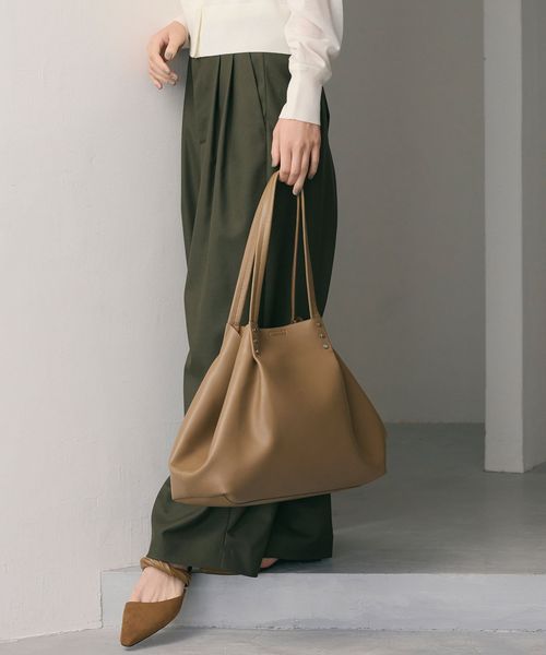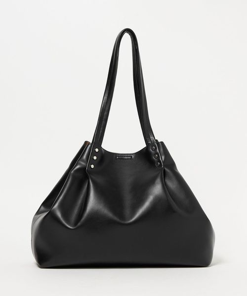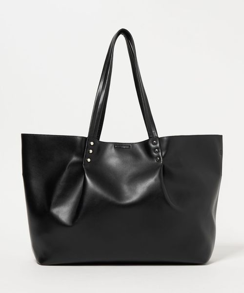 持ち手から繋がるタックがデザインポイントの、ビッグトートバッグ。
