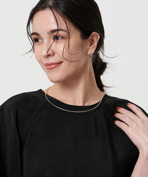 チョーカーのような雰囲気で身に付けられるデザインながら、首元をすっきりと見せ、顔周りに品のある印象を与えます。