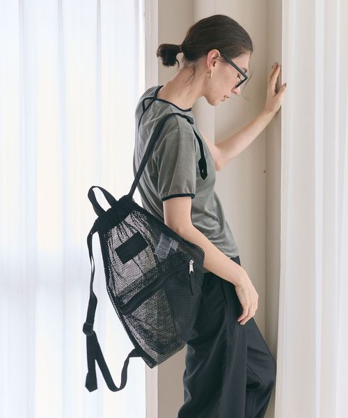 メッシュ生地がコーデのポイント使いにもなる一品は、いつもの装いに身に付けるだけでこなれ感アップ。