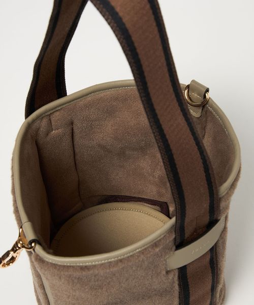 あたたかみのあるボアにライン入りのワンハンドルがスタイリッシュな一品。