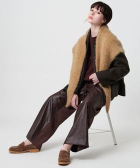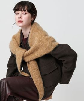 モヘヤ混素材で作製した、やや細めの三角シルエットのマフラー。