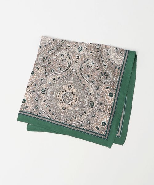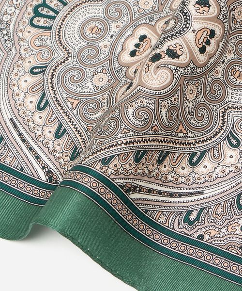 クラシックなムード漂うペイズリー柄のシルクスカーフ。