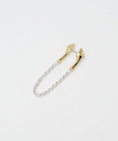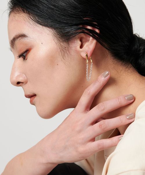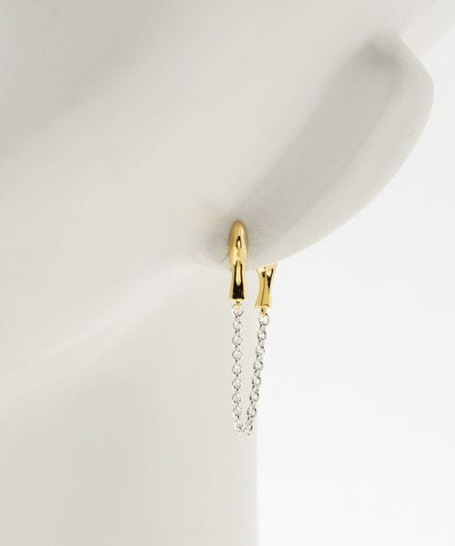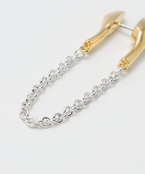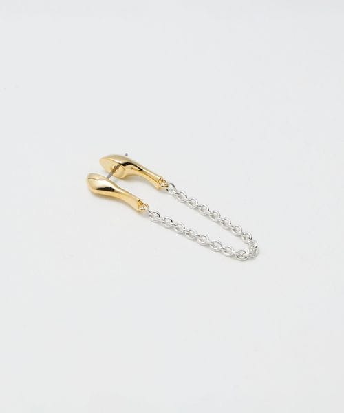 ニュアンスのあるトップにキャッチとチェーンが繋がったデザインのピアス。