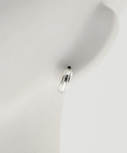 小さい丸粒を並べたミル打ちデザインのフープピアス。