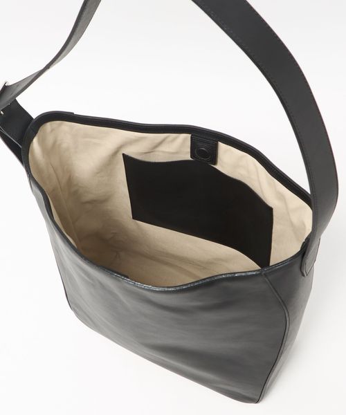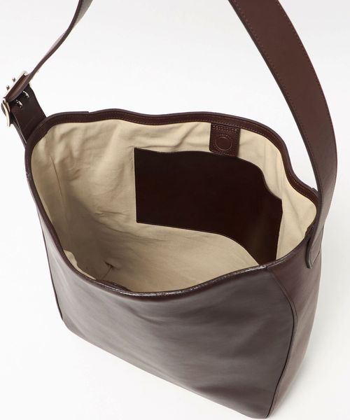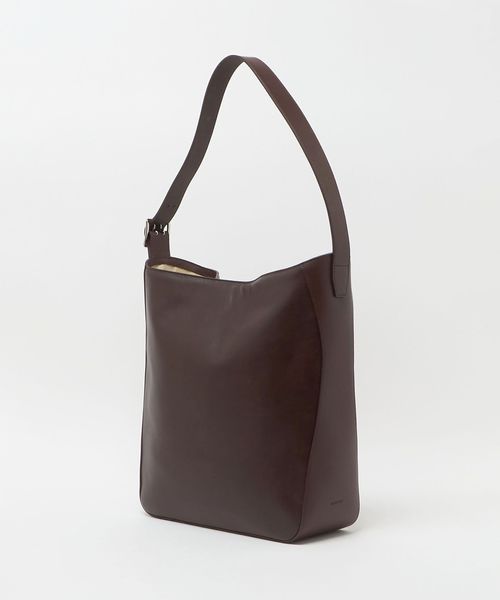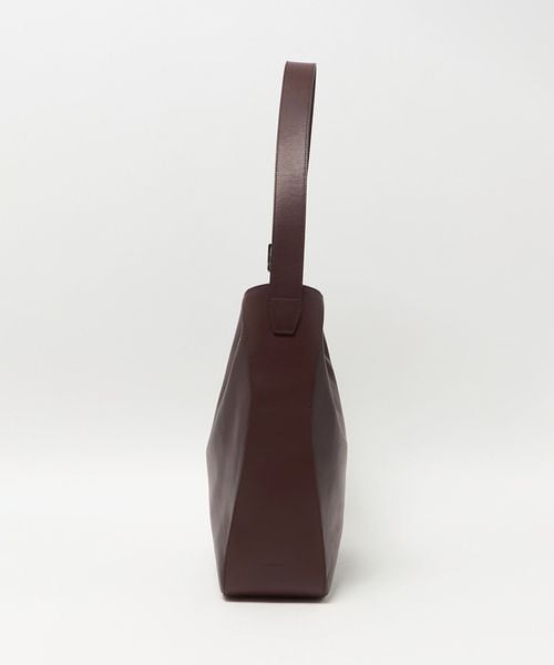 両サイドのマチを曲線的なラインに仕上げることで自然な落ち感が生まれ、ソフトで上質な雰囲気を生み出しています。