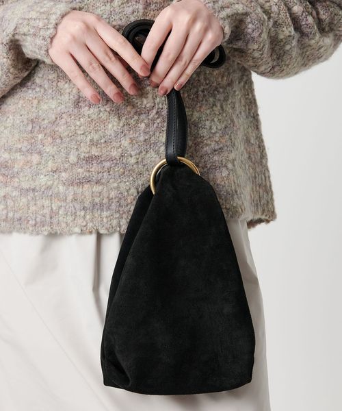 シンプルなルックスでスエードの素材感が際立ち、リング金具がアクセントを効かせています。