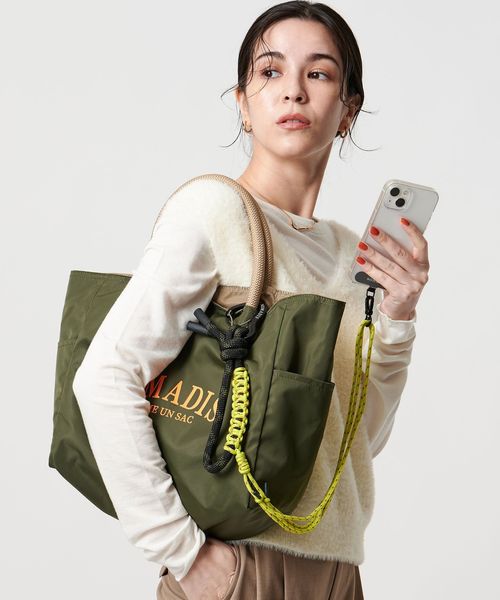 スマホ以外にも鍵やイヤホンケースなどをつけたりと、さまざまなアレンジが可能。