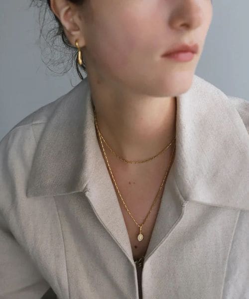 そのままでもさりげない存在感を発揮しますが、お手持ちのネックレスとの重ねづけもおすすめです。