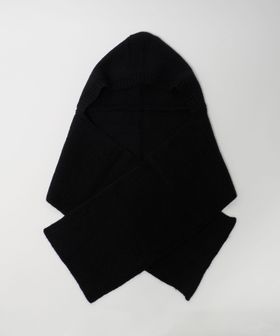 マフラーにフードを組み合わせたデザインが新鮮な一品。