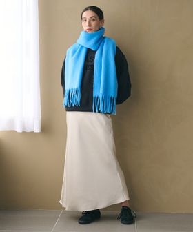 柄物や鮮やかなカラーのニットに合わせて、スタイリングの引き締め役として添えるのはもちろん、マフラーの色を効かせたアクセント使いにもおすすめ。